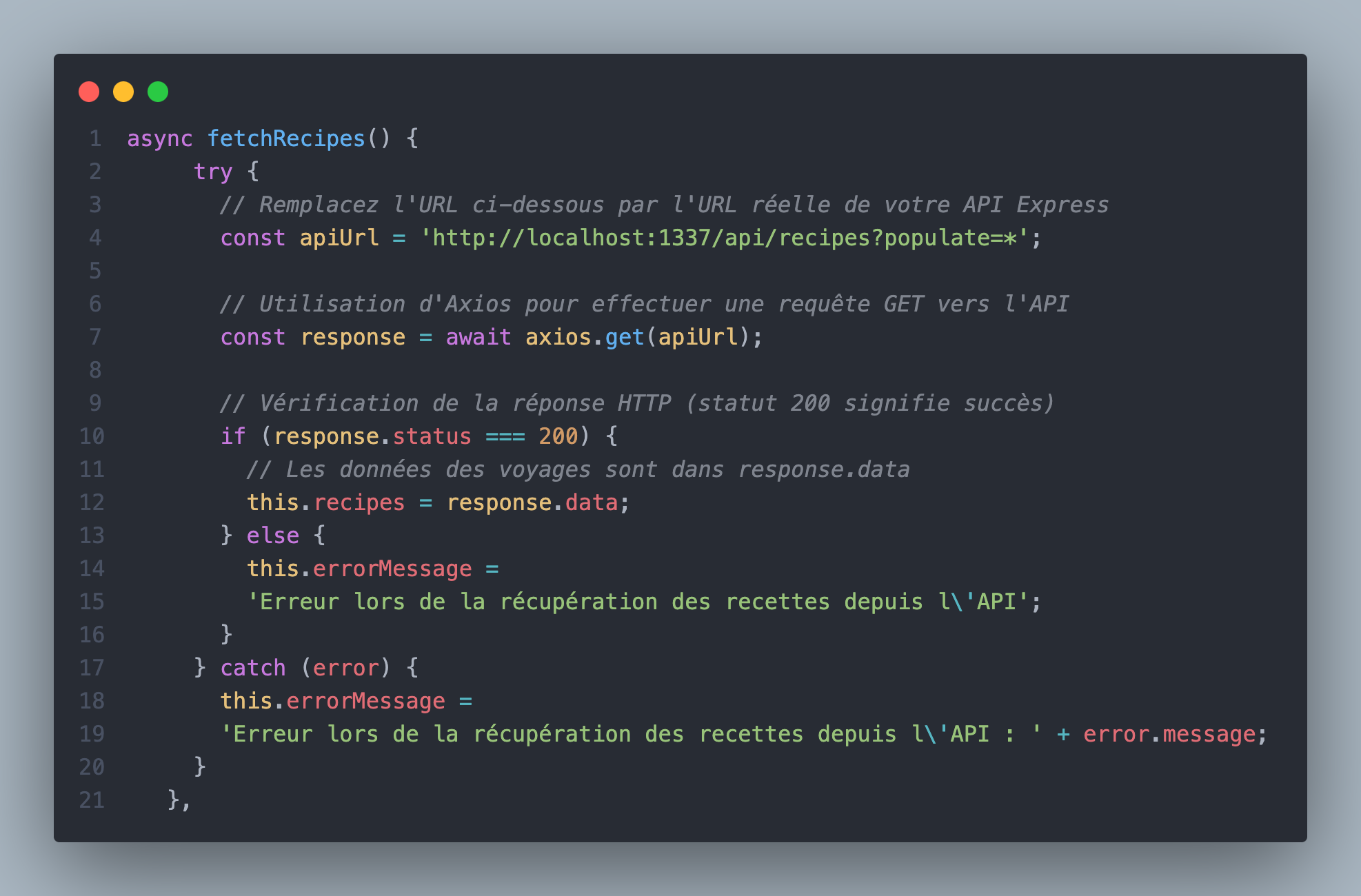 Pour gérer le contenu de ce projet, y compris les recettes et les catégories, j'ai opté pour l'utilisation de Strapi, un CMS headless. Cette solution présente l'avantage d'être simple à utiliser et peut être intégrée à n'importe quel frontend de site via des requêtes HTTP. De plus, elle est hautement personnalisable, ce qui permet à des individus sans compétences techniques avancées de gérer le contenu de leur site web de manière autonome.