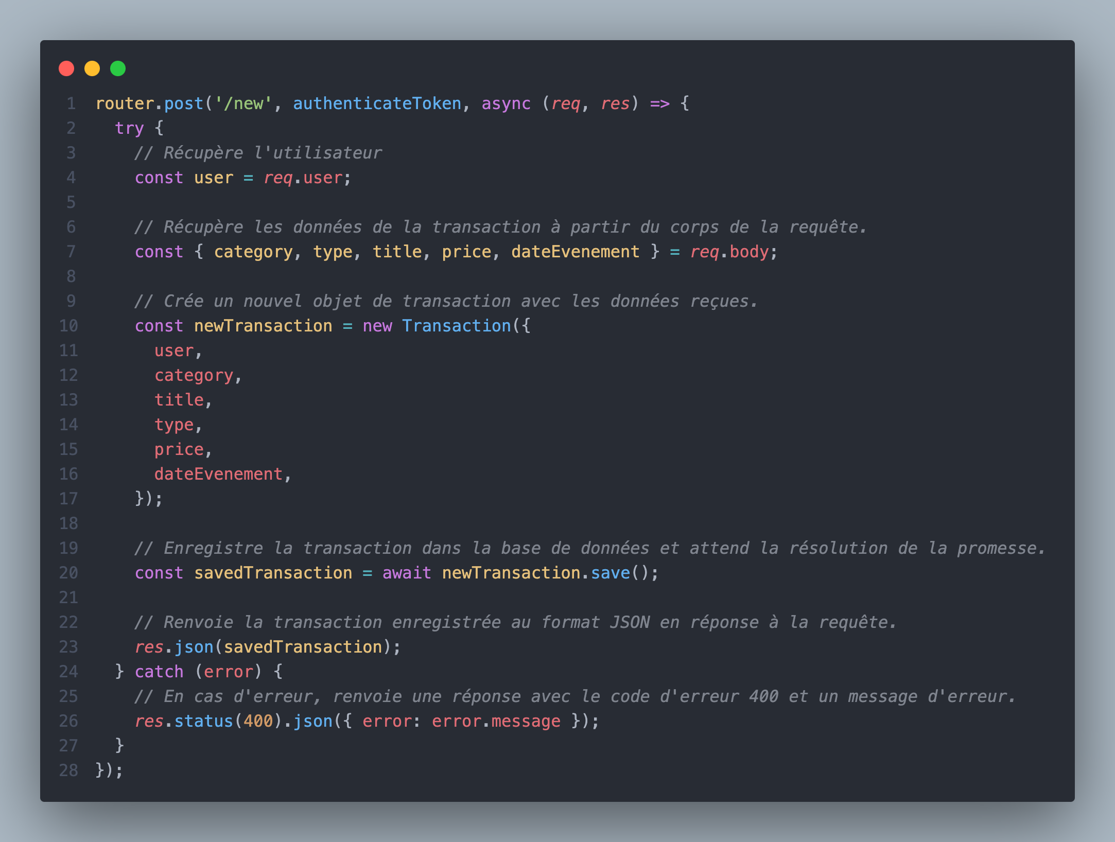 Les utilisateurs ont la possibilité de consulter, ajouter, mettre à jour et supprimer des transactions ainsi que des catégories. Chaque utilisateur peut personnaliser ses propres catégories pour créer un tableau de bord entièrement adapté à sa situation financière.